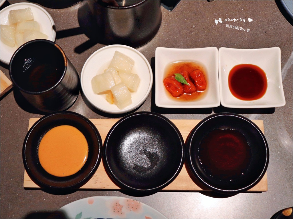 首先座位先擺好了醬料盤