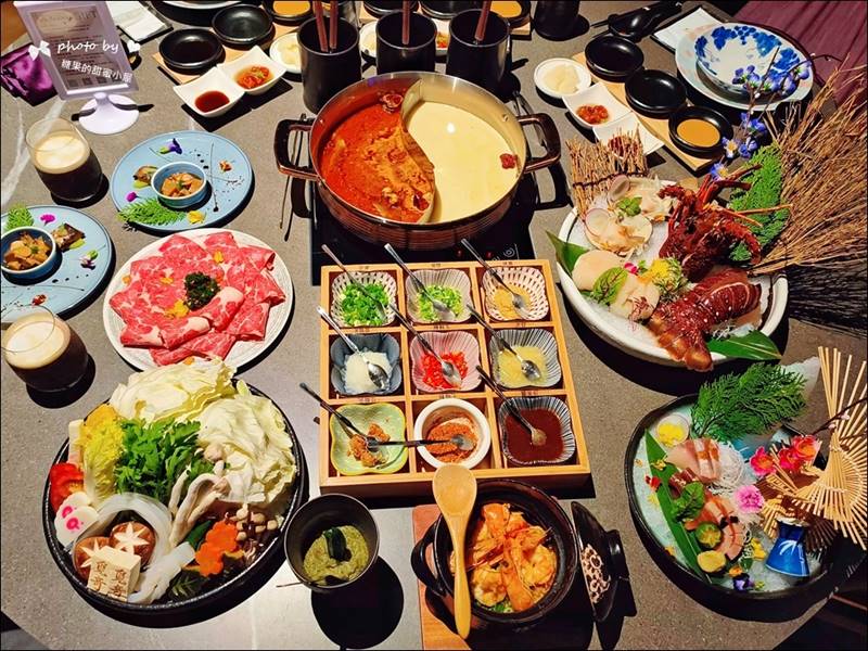前菜、生魚片、龍蝦、肉品、牛肉漿、漬物、鴛鴦鍋、主食、甜點、飲品