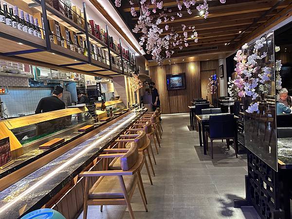 右邊是日式料理區,用櫻花點綴的裝飾更增添日式風味,