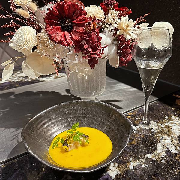 法式赤珊瑚濃湯/澳洲黑鮑魚/水果玉米
