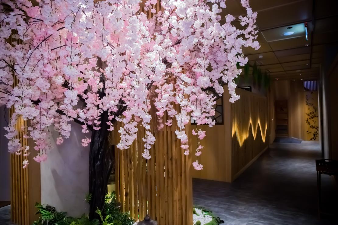 禪意素材搭配櫻花滿開,完美塑造出東瀛氛圍