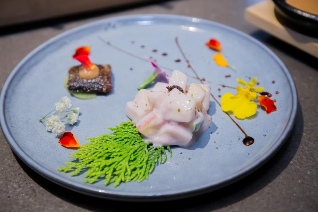 由日式秋刀魚、涼皮龍蝦和山藥豆腐的組合,食材豪華和擺盤巧思,完全兼顧視覺與味覺的感受,相當開胃