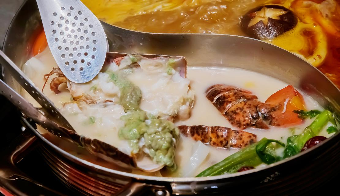 龍蝦的鮮甜和冰磚雞白湯交融在一起,湯品甜味更有層次感