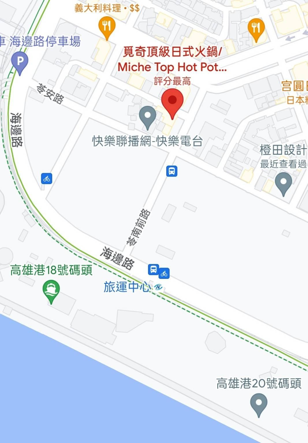 位於苓南路上的覓奇頂級日式火鍋,附近就是長榮航空大樓跟高雄港埠旅運中心