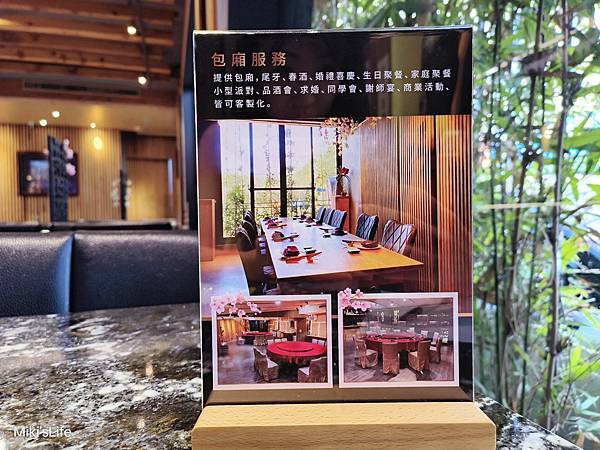 櫻花與綠竹林輝映的空間,很有日式浪漫風格,整體寬敞舒適空間無壓迫感,二樓還備有包廂,有4人、6人、8人,並有15人、20人的大包廂,很多朋友的公司聚餐也常常辦在覓奇頂級日本料理